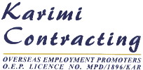 Karimi Contracting is ranked as one of the leading Manpower Consultants and Recruiting Agency in Pakistan to provide manpower from Pakistan for Middle East and Far East. Karimi Contracting have been recruiting the highest quality manpower to its precious clients based Middle East and Far East. We are licenced by the Government of Pakistan, Ministry of Labour, Manpower and Overseas Pakistanis.